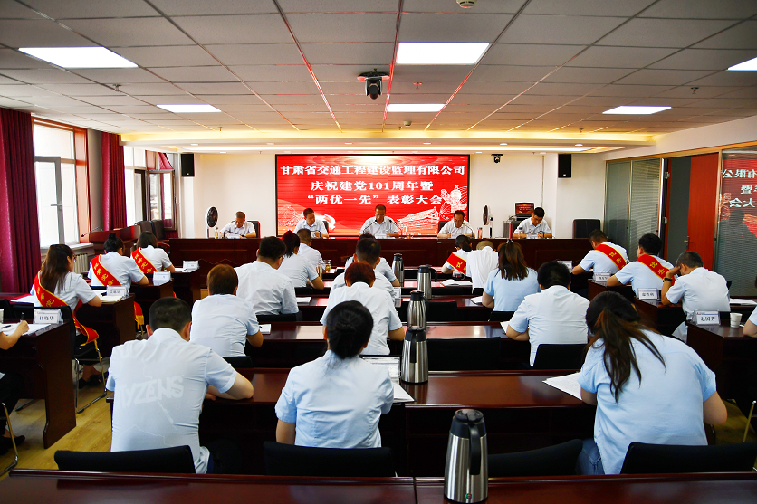 6月30日,甘肅省交通工程建設(shè)監(jiān)理有限責(zé)任公司召開慶祝建黨101周年暨“兩優(yōu)一先”表彰大會。交通監(jiān)理公司領(lǐng)導(dǎo)班子成員,機關(guān)及子公司全體黨員、中層干部,受表彰的先進(jìn)集體和優(yōu)秀個人代表共計30余人在主會場參加表彰大會,各項目機構(gòu)在分會場參會。會議由交通監(jiān)理公司黨委副書記、總經(jīng)理丁峰主持。