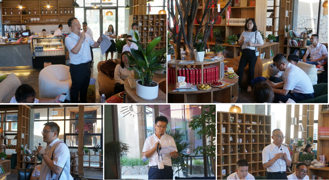在棲云小鎮(zhèn)書吧開展的“一心永向黨,喜迎二十大”的交流研討會(huì)上,羅堯同志代表第五黨支部作主題發(fā)言。他首先對(duì)參加本次主題黨日活動(dòng)的同志們表示歡迎和感謝,然后為大家深入講解并解讀了我省第十四次黨代會(huì)提出的“一核三帶”省域發(fā)展新藍(lán)圖和“四強(qiáng)”行動(dòng)相關(guān)要點(diǎn),并倡議每一位規(guī)劃工作從業(yè)者應(yīng)當(dāng)加強(qiáng)政治學(xué)習(xí),提高政治站位,在全面把握全省重大政治任務(wù)的前提下,與時(shí)俱進(jìn),緊密聯(lián)系實(shí)際開展規(guī)劃設(shè)計(jì)工作,并著眼長遠(yuǎn)、聚焦重點(diǎn),充分發(fā)揮技術(shù)優(yōu)勢(shì),助力全面推進(jìn)甘肅經(jīng)濟(jì)社會(huì)高質(zhì)量發(fā)展。黨委辦公室主任樊曉丹同志作了“高度重視黨建工作,推動(dòng)黨建工作和業(yè)務(wù)工作深度融合”的主題發(fā)言。她首先肯定了第五黨支部一直以來在黨建工作中取得的成績,并鼓勵(lì)支部應(yīng)當(dāng)百尺竿頭更進(jìn)一步,積極打造黨建品牌,不斷提升基層黨建工作的引領(lǐng)力、號(hào)召力和吸引力。團(tuán)委書記劉斌同志以《回顧百年團(tuán)史,匯聚青春力量》為題,講授了一堂生動(dòng)的黨課,帶領(lǐng)大家一起走進(jìn)百年團(tuán)史,追尋信仰之光,勇?lián)啻菏姑?,倡議廣大團(tuán)員應(yīng)當(dāng)緊跟黨走,擔(dān)時(shí)代之責(zé),做新征程的奮進(jìn)者、開拓者和奉獻(xiàn)者,傳遞青春力量,綻放青春芳華,用青春和熱血書寫新時(shí)代壯麗篇章。其他黨員及入黨積極分子也從自身學(xué)習(xí)和工作實(shí)際出發(fā),分別就基層黨建、政治理論學(xué)習(xí)、黨員先鋒模范作用發(fā)揮等方面交流了各自的所思所感。