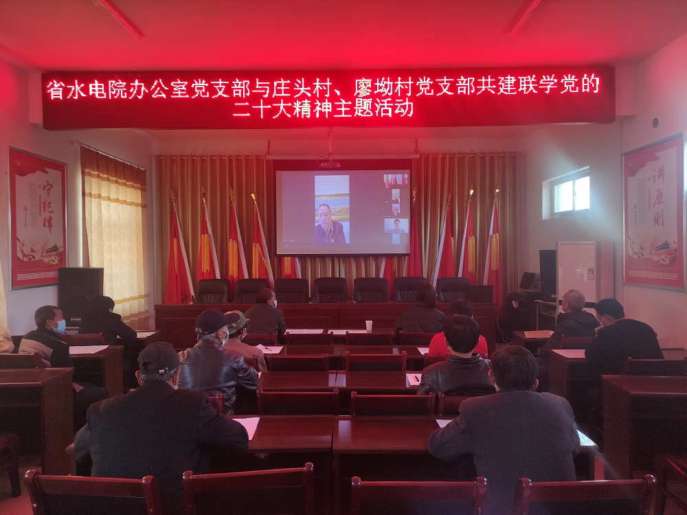 為持續(xù)促進(jìn)黨的二十大精神學(xué)習(xí)貫徹走深走實(shí),使黨的二十大精神進(jìn)村入戶、深入人心,11月22日,甘肅省水利水電勘測設(shè)計(jì)研究院有限責(zé)任公司辦公室黨支部與幫扶村西峰區(qū)莊頭村黨支部、廖坳村黨支部開展共建聯(lián)學(xué)黨的二十大精神主題活動。