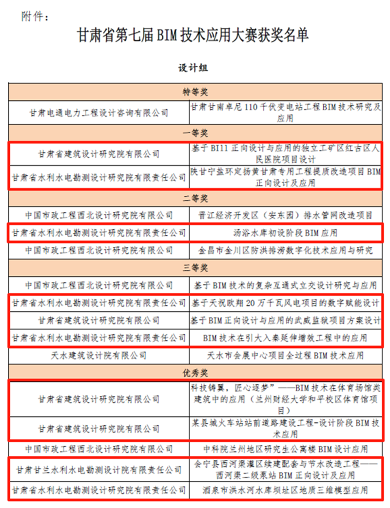 近日,甘肅省第五屆“創(chuàng)新杯”工業(yè)設計大賽、第十七屆全省職工優(yōu)秀技術創(chuàng)新成果獎和甘肅省第七屆BIM技術應用大賽的評選結果相繼公布,甘肅工程咨詢集團15項技術和研究成果獲獎。