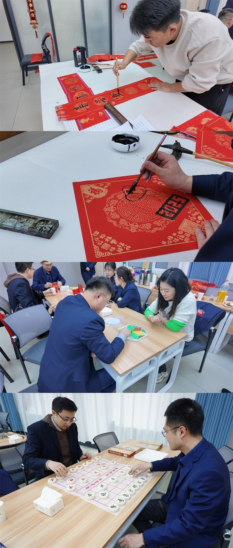 棋牌類游戲區(qū),博弈雙方凝神屏氣、見招拆招、運(yùn)籌帷幄、樂在“棋”中。春聯(lián)福字區(qū),長桌排開、翰墨飄香,喜迎新春的氣氛撲面而來。一聲聲叫好、一副副春聯(lián)、一個個“福”字,承載著大家對新年的美好期盼與祝福。