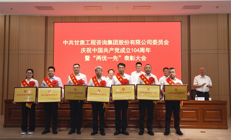 7月1日,甘肅工程咨詢集團(tuán)召開慶祝中國(guó)共產(chǎn)黨成立104周年暨“兩優(yōu)一先”表彰大會(huì),回顧黨的輝煌歷程,弘揚(yáng)偉大建黨精神,全面展示集團(tuán)黨建工作成效和黨員干部昂揚(yáng)風(fēng)貌,激勵(lì)各級(jí)黨組織和全體黨員凝心聚力、擔(dān)當(dāng)作為,奮力推動(dòng)集團(tuán)公司高質(zhì)量發(fā)展邁向新臺(tái)階。集團(tuán)公司黨委書記、董事長(zhǎng)張佩峰出席并講話,總經(jīng)理、董事陳一夫及在家領(lǐng)導(dǎo)班子成員出席,黨委委員、副總經(jīng)理孟康榮宣讀表彰決定,紀(jì)委書記、監(jiān)察專員師宗正主持會(huì)議。