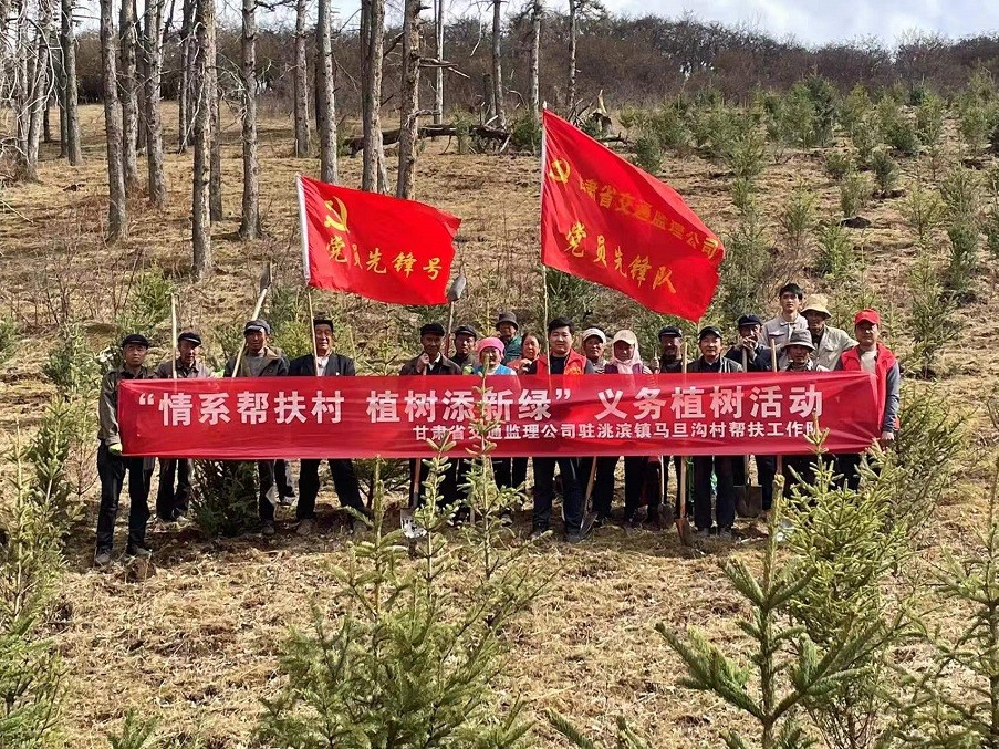 為積極響應(yīng)習(xí)近平總書記“全社會都做生態(tài)文明建設(shè)的實(shí)踐者、推動者,讓祖國天更藍(lán)、山更綠、水更清、生態(tài)環(huán)境更美好”的號召,以打造“五無甘南”,創(chuàng)建“十有家園”為目標(biāo),加快推進(jìn)鄉(xiāng)村振興戰(zhàn)略實(shí)施,共建生態(tài)宜居宜業(yè)的美麗鄉(xiāng)村,近日,甘肅省交通工程建設(shè)監(jiān)理有限公司駐臨潭縣洮濱鎮(zhèn)馬旦溝村幫扶工作隊(duì)積極發(fā)揮自身職能,協(xié)同包村干部、村“兩委”成員、駐村黨員、義務(wù)志愿者及群眾代表等開展義務(wù)植樹活動。