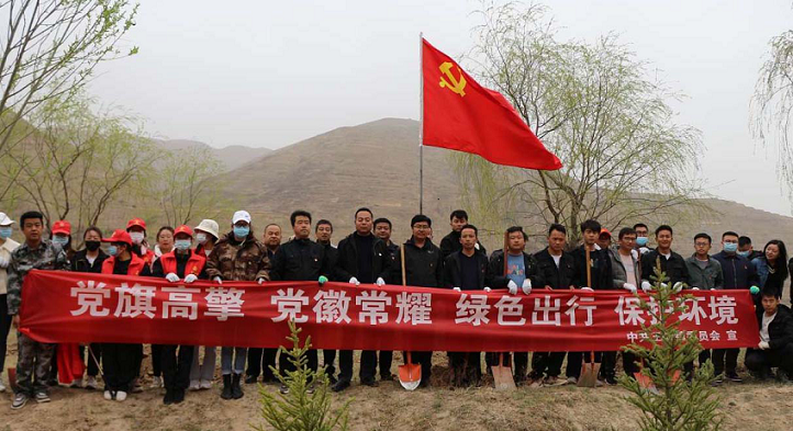 2022年4月,根據(jù)王旗鎮(zhèn)安排,駐村幫扶工作隊(duì)員會(huì)同其他鎮(zhèn)村干部組織群眾數(shù)十人,在洮河西岸磨溝段開展了以“黨旗高擎、黨徽常耀、綠色出行、保護(hù)環(huán)境”為主題的義務(wù)植樹活動(dòng),共栽下4000余棵松樹苗,掀起了植樹造林的熱潮。