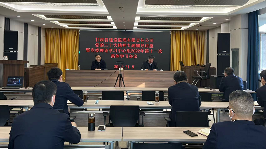 11月8日,甘肅省建設監(jiān)理有限責任公司召開2022年黨委理論學習中心組第十一次集體學習(擴大)會議,邀請省委黨校李景銘教授作黨的二十大精神專題輔導講座。會議以“線上+線下”形式召開,黨委書記、董事長魏和中主持,領導班子成員、中層干部參加。